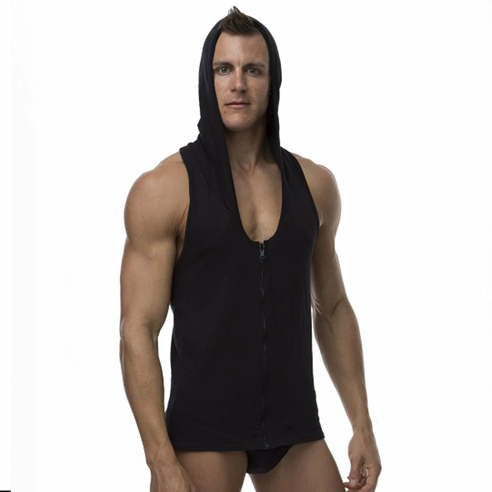The Cover Male Tank Hoodie is what you need for your regular workouts as well as your cool look while you lounge around at home.With a relaxed fit and a functional hoodie, the front zipper and deep neck makes you look fancy.