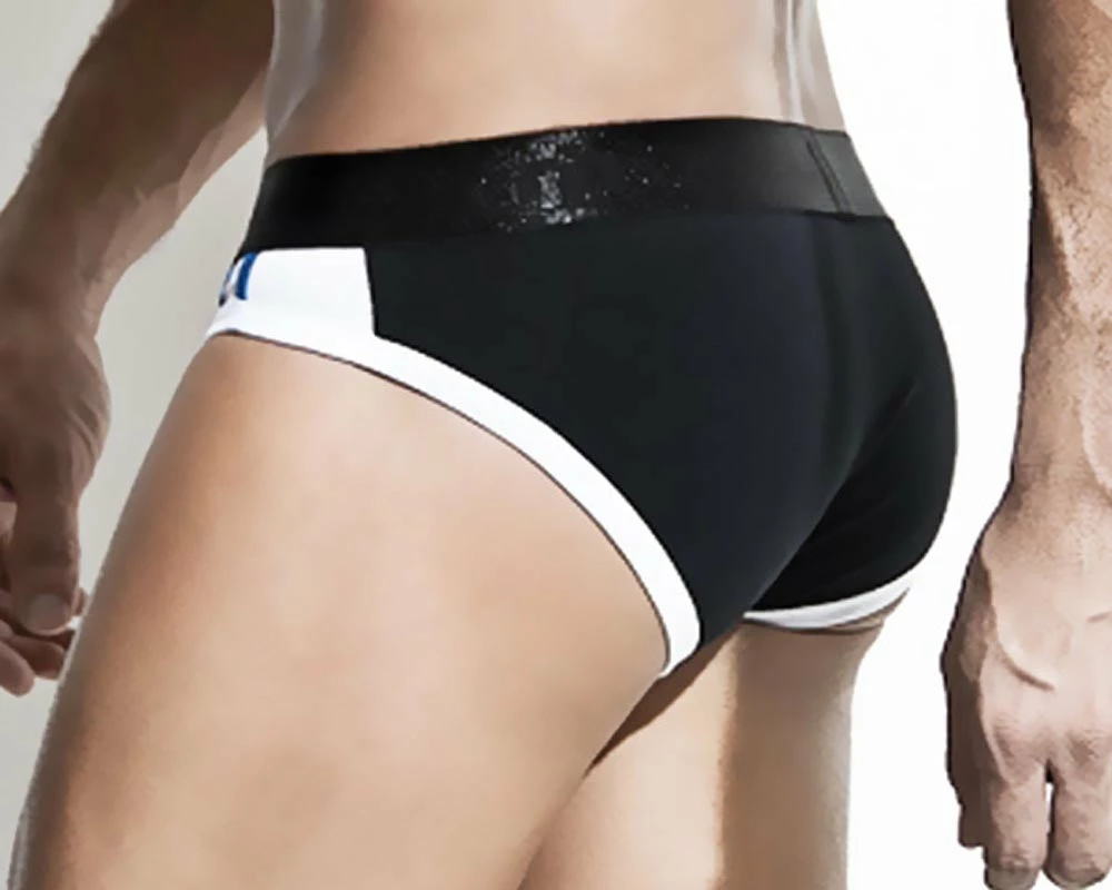 - White trimming on the bottom of the briefs