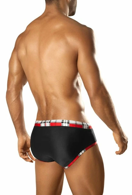 Vuthy 283 Black With Red Plaid Waist Swim Brief Swimwear